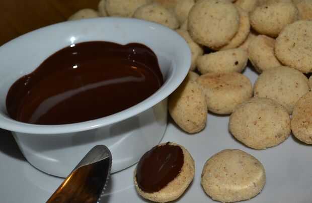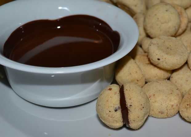 Coloque el chocolate en la parte plana de la cookie con un cuchillo de mantequilla (o sumerja en él) y coloque otra galleta encima.