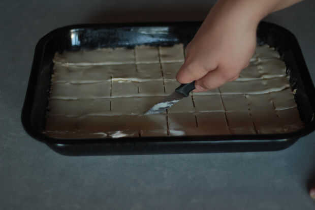 Paso 10: Enfriar hasta formación de hielo es atiesada y cortar en cuadrados