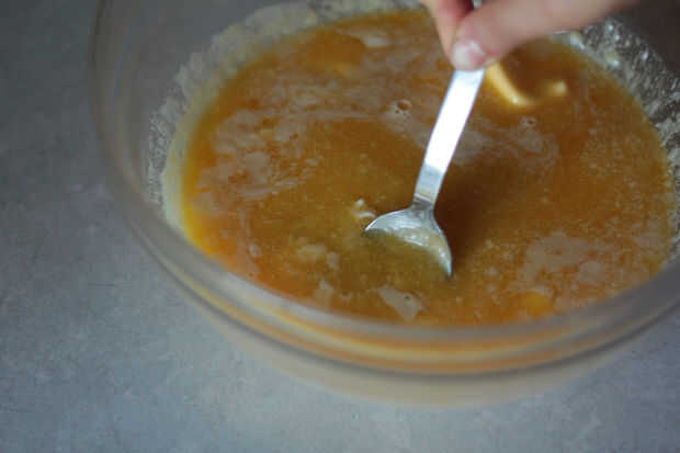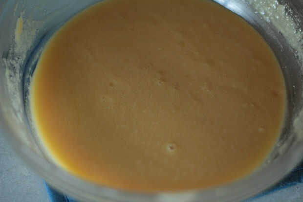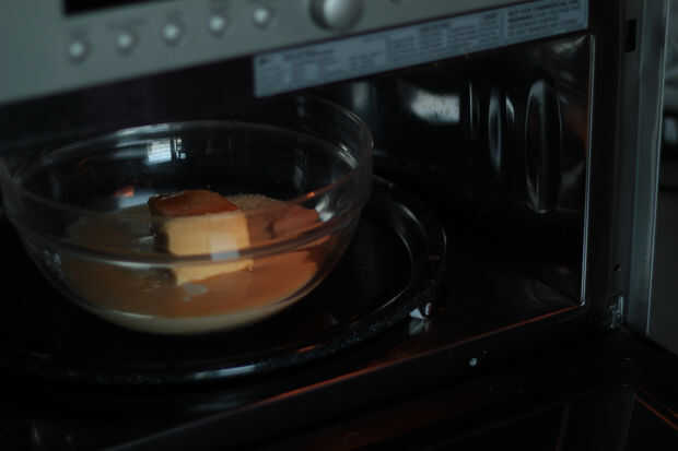 Calor hasta que la mezcla en el microondas la mantequilla se derrita y el azúcar se disuelva. Revuelve un poco también.
