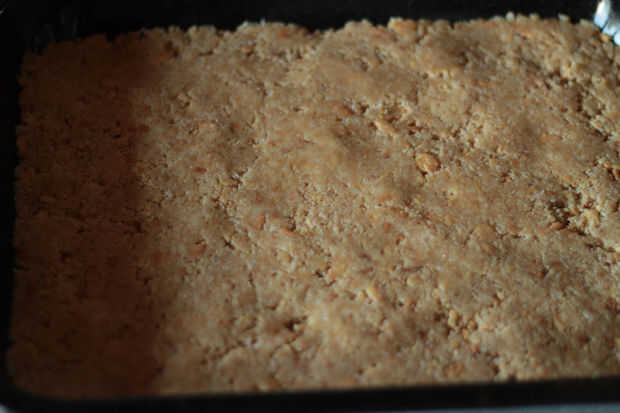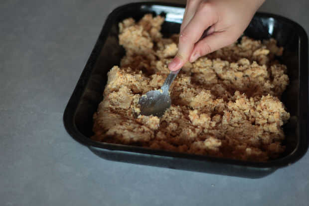 Paso 6: Agregue la mezcla a la bandeja de horno y aplane uniformemente