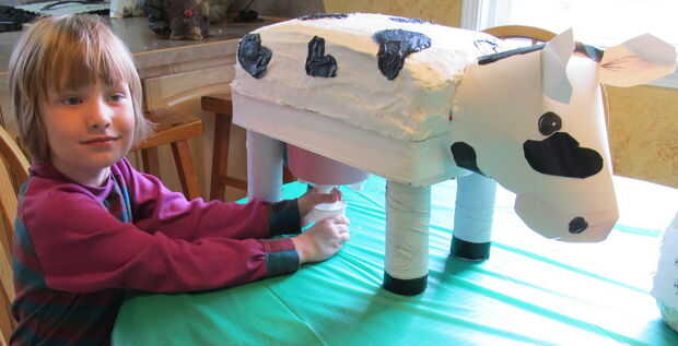 Asamblea = cuando es el momento de ensamblar todo. Puede recuperar su bolsa de la torta y la leche de la nevera. Fijar su posición y caer la bolsa de leche. Luego la pila el pastel sobre la parte superior del soporte. Agregar la cola y la cabeza como toques y luego fiesta hasta que las vacas Inicio!