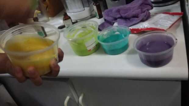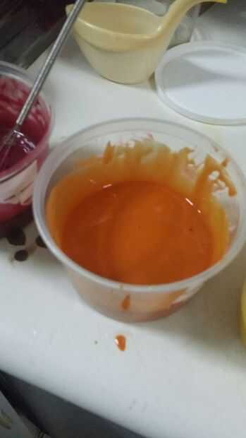 etapas para hacer un pastel de arco iris con diferentes colores louisePaso 1: hacer las tortas mezcla de pastel de 8 oz igualmente se dividen en 5 tazones de fuente y agregar todos los coloresPaso 2:Vierta en la bandeja y hornear durante 10 a 15 minu