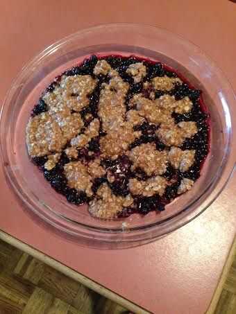 Espolvoree sobre arándanos y hornee a 350 por 20 minutos. Servir con crema batida o helado.