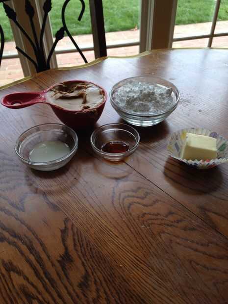 esta receta es tan simple y tan fácil, usted nunca tendrá quecomprar perro trata otra vez.Paso 1: paso uno ingredientes2 tazas de harina1 taza de leche1 taza de mantequilla de maní (grueso o suave)1 cucharada de polvo de hornearPaso 2: precalienta el