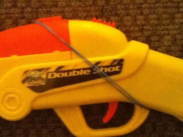 Este instructable le dirá cómo hacer su doble arma de tiro a fuegopequeñas bolas o barras aún verdes de KVG.Todo lo que necesita:Nerf dardos de tm.Tm de blaster Shot doble de aireConchas para la pistola.Una paja gruesa que apenas cabe la cáscara.(Deb