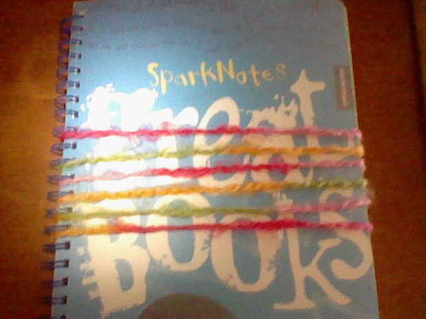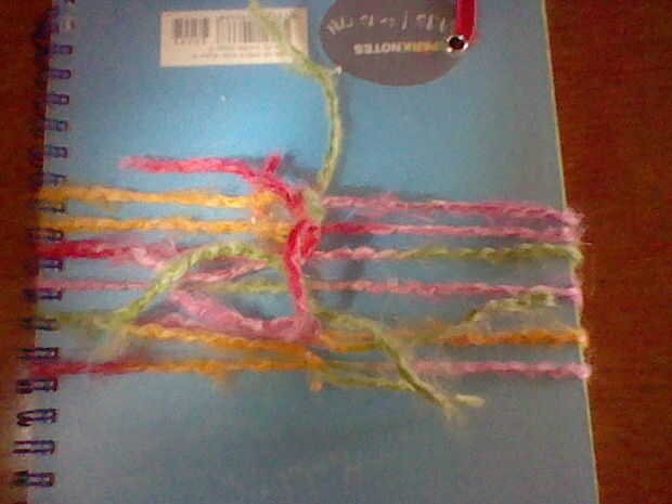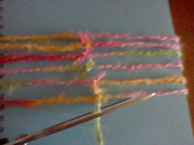 Firmemente atar cada hebra de hilo al lado del otro horizontalmente sobre el libro, luego alinear los nudos. Cortar exceso hilados de nudos, entonces, asegúrese de que las cuerdas no overlaping.