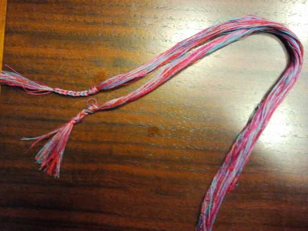 EMPIEZAS TIRANDO TODO 3-4 HILOS DE ROSCA COLOREADOS JUNTOS MEDIR 8 PULGADAS EN LONGITUD. LUEGO CORTAR Y REPETIR HASTA OBTENER EL GROSOR DE LA PULSERA USTED DESEA. SEPARAR EL HILO DE CORTE EN DOS SECCIONES Y LAZO. A CONTINUACIÓN USTED TRENZA LOS HILOS DE ROSCA JUNTOS, OPTÉ POR USAR EL MÉTODO DE ESPINA DE PESCADO PARA LOS MÍOS. DESPUÉS DE TRENZAR LOS HILOS PARA ATAR EL EXTREMO A. COSER BUTTONSTO HACER SU PROPIO DISEÑO EN EL CENTRO DE LA TRENZA. POR ÚLTIMO SE QUIERE COSER UN BOTÓN HASTA EL FINAL DE LA PULSERA Y COSER UN LAZO CON LOS DOS EXTREMOS DEL PRINCIPIO DE LA PULSERA. QUE completa tu pulsera de BFF realizado con botones :)