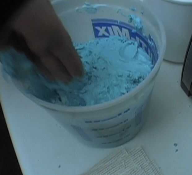 Una vez que el alginato se mezcla completamente puede empezar a aplicar a su brazo y mano seca temas. Alginato no necesita a un agente de liberación. Si algo tendría la persona que solicita el alginato al tema pone algunos jalea petrolum en sus manos, porque este material se pega a todo! Cubrir el área entera y comprobar no hay burbujas de aire en el alginato o que no es demasiado fina en todas las áreas. El alginato debe comenzar a establecer en 5-6 minutos momento en el que puede empezar a aplicar su gasa de yeso.