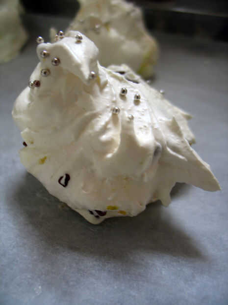 - Forman las pirámides de la mezcla con una cuchara, espátula o tenedor... usted también puede usar una manga pastelera para formar su Bianchini, si quieres.