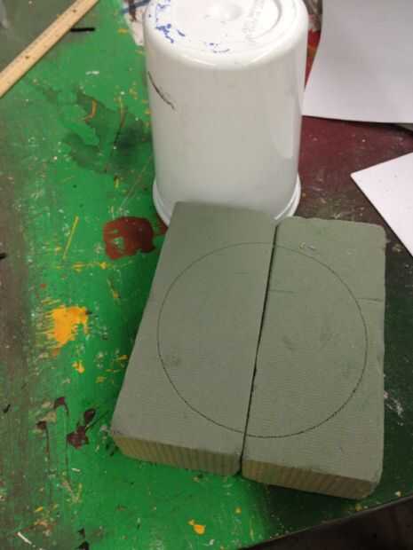 1) tomar pedazos de rectángulo de espuma moldeable y ponerlos al lado de uno. Luego dibuja un círculo como se muestra en la imagen.
