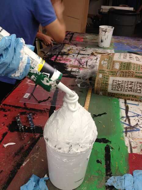 2) Aplique una capa uniforme de semi de látex líquido a la espuma. (No liso nada aún.)