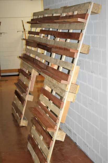 En busca de un proyecto de madera de palet.Paso 1: Dividir las paletas Utilizando un martillo y Cuervo bar intentó desmontar los palets sin dañar demasiado la madera.Paso 2: Crear una biblioteca con la madera. Realmente no miden ni este plan al igual