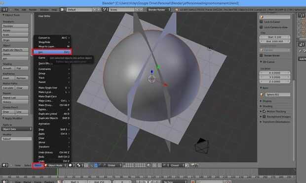 Puso de relieve mi exterior y mi interiores esferas y me fui a objeto -> Join para que sean un solo objeto. Ahora tenía una única, delicada esfera.