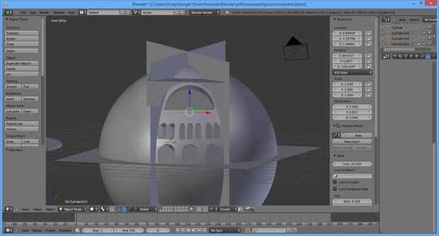 Alinearon mis objetos en mi esfera. Los planos realmente ayudó a con la visualización de la disposición. También encendí todas mi Espejo modificadores (más abajo) para ver cómo se veía como trabajo. Si es necesario, rotaba los objetos para que ellos se posicionaron mejor en la esfera.
