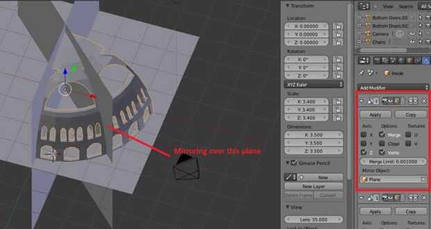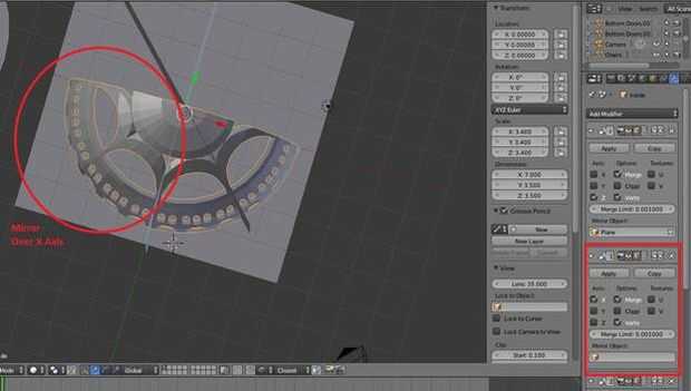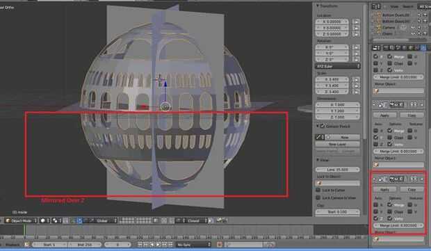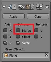 (Si recibes los bordes no-múltiple, Ctrl-Z para deshacer y tratar de rehacer el espejo, esta vez desmarcando la opción fusionar espejo)