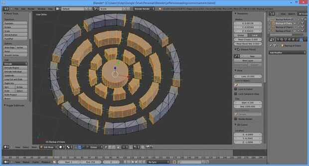 Dentro de mi Adorno, tengo un pequeño cilindro en el medio como el suelo de mi sala de lectura y quería agregar algunos detalles sutiles de sillas y pasillos. Para las sillas que hice Add -> Mesh -> círculo de varios tamaños.