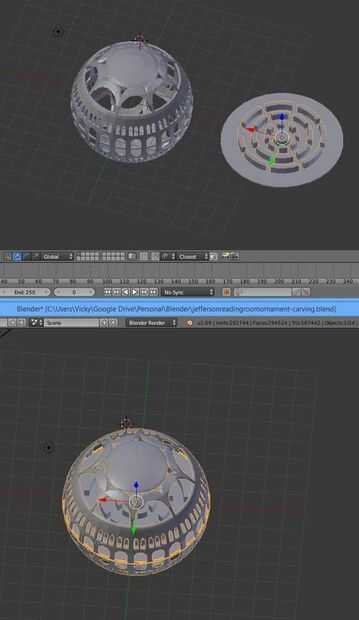 Una vez tenía todo modelado, moví en su lugar dentro de mi esfera.