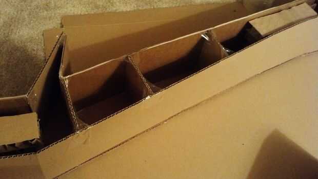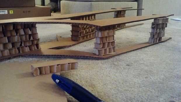 Tuve algún nido de abeja embalaje material que trabajó gran apila para arriba y comenzar a construir la profundidad. Decidí hacerla 6'' de espesor para poder montar la mayoría de libros y DVDs. Entonces yo cortar un manojo de tiras de cartulina que eran 6'' de espesor y había enmarcado para arriba alrededor del exterior.