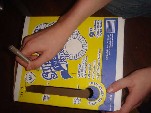 Comienzo cortando un cuadrado en la parte frontal de la caja utilizando la cuchilla x-acto, el tamaño de la plaza se varían dependiendo de la caja, la caja alrededor del tirón y cortar un panel de acceso en la parte posterior. (para poder cambiar el signo)