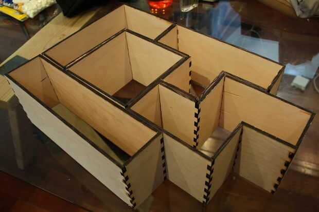 He quitado todas las piezas y había examinado los bordes, algunos necesitan lijado/acabado adicional. Separadas las piezas por tamaño (hay 6 diferentes longitudes) y los compararon con mi marca modelo 123D. Para estar seguro, reuní mis piezas de tetris sin pegamento primero.