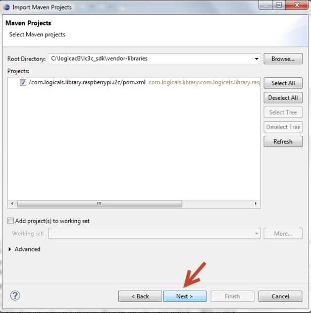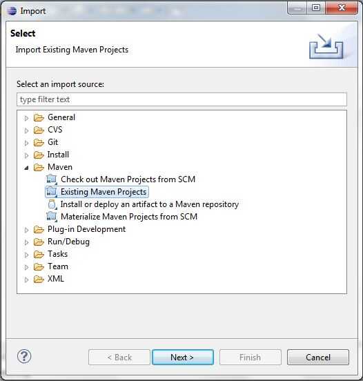Seleccionar "Proyectos de Maven existente" y "Siguiente" del golpe.