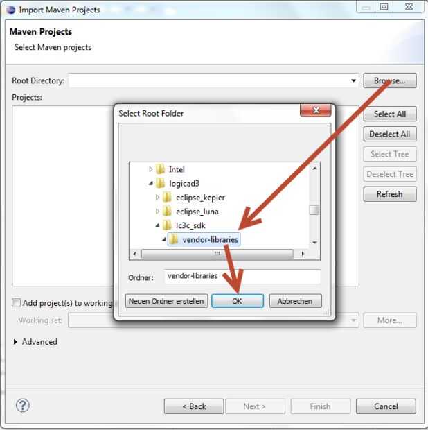 Ahora golpe "Examinar..." y seleccione las carpeta "proveedor-bibliotecas" del extraído "proveedor-libraries.zip".