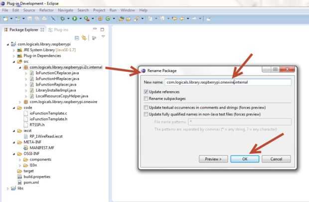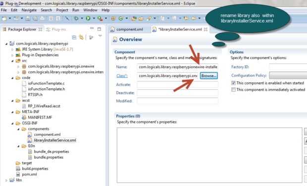 Es muy importante cambiar el nombre de la biblioteca también dentro de los archivos dentro de "META-INF" y "OSGI-INF".