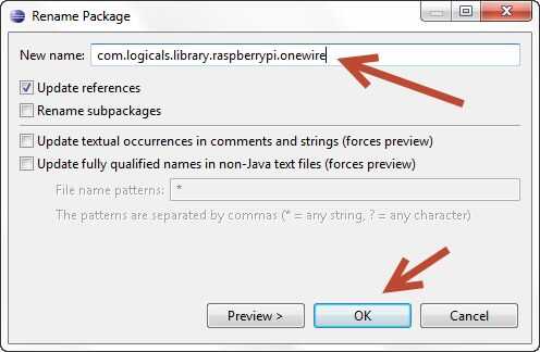 Utilice "Cambiar nombre/Recfactor" (Alt-Shift-R) para dar los paquetes ubica a partir de "com.logicals.library" un nuevo nombre.