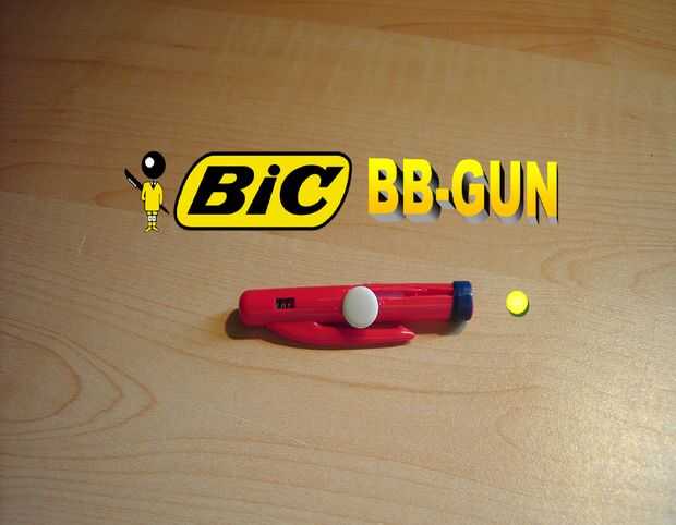 para construir una pistola miniatura. Se necesita: Bic pluma papel cinta alfiler con bola o cabeza plana de la pistola de pegamento caliente de back-end tijeras Nota: este mismo proceso puede ampliarse utilizando tubería de PVC de un tamaño más típic