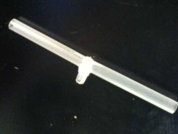 conseguir una pluma BIC y saque la cámara de tinta con pinzas o sus dientes, manos. Hacer un agujero en el centro de la pluma con un cuchillo. Entonces una goma y poner en el lápiz como se muestra en la imagen. Entonces la cámara de tinta a través de