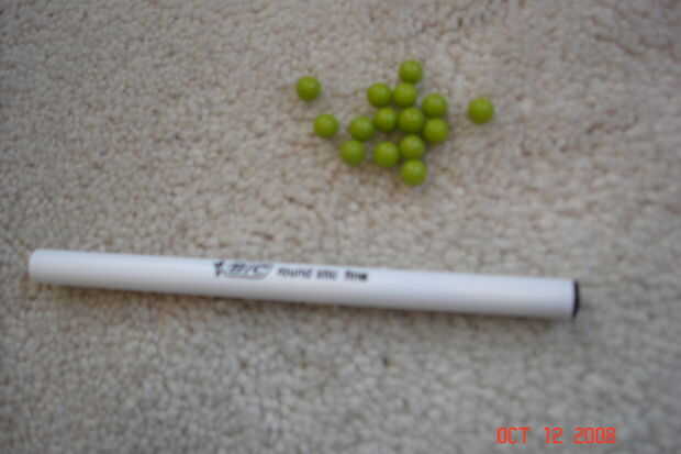 Ok, la caja de la pluma con el tapón del extremo posterior con pelotillas de airsoft de la materia y lo puso en el sostenedor del clip de munición.