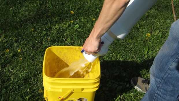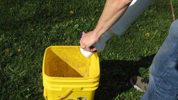Volcado de los contenidos restantes de la cámara de reacción en un cubo grande. Entonces enjuagar todo con una manguera de jardín. Después de limpiar el cañón debe ser listo para cargar y disparar otra vez.
