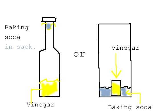 7. Atornille la tapa en la botella firmemente, teniendo cuidado de no mezclar el vinagre y el bicarbonato de sodio.