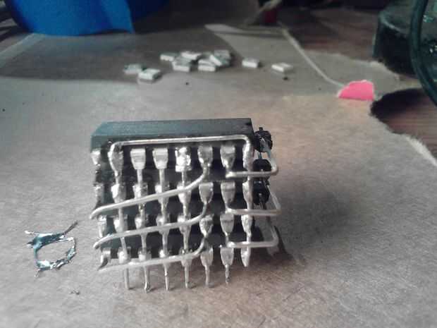 Im generalmente con cambio de registros con LEDs, lo que significa a menudo la salida a resistencias, que pueden complicar las cosas, pero también puede hacer que para los diseños más interesantes. De apilamiento no es la única manera de hacer esto. pero uno de las maneras más interesantes, sobre todo porque es vertical, una dirección poco común para construir electrónica. También ilustra cómo las partes trabajan juntas para hacer una parte grande, como un hotel con muchos pisos y muchas de las habitaciones en cada piso.