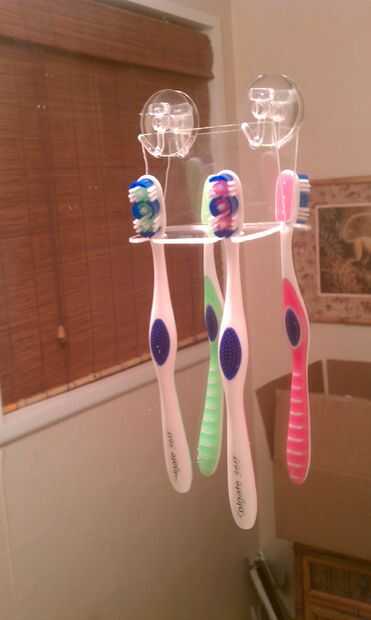 Esconder nuestros cepillos de dientes para arriba fuera del alcance del perro haciendo un una rejilla sujeta al espejo. (esto debe poner fuera del alcance de la mayoría de los otros animalitos que pueden estropear tus implementos de higiene oral en el medio de la noche)