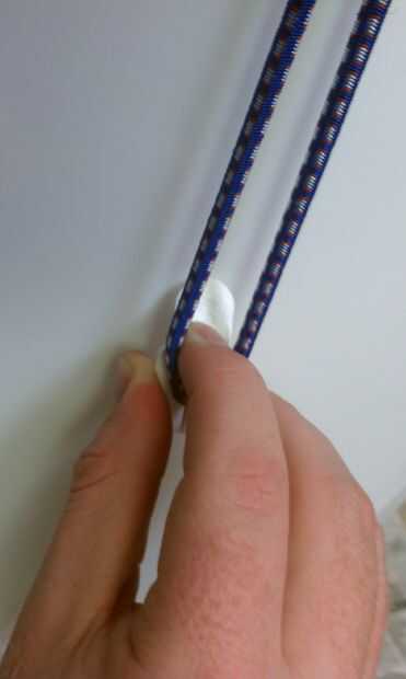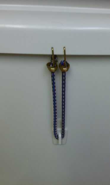 Coloque la tapa sobre la lata. Ahora tire el papel adhesivo del gancho y gancho en el bungee. Tire hacia abajo ligeramente para el bungee es enseñado y pegar el gancho en la lata. Presione hacia abajo buena y apretada.