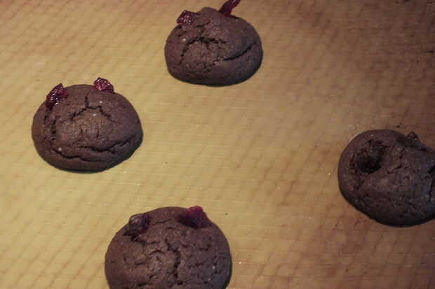 Colocar 2 piezas de fruta seca en la "cabeza" de la cookie antes de hornear o después cuando la galleta está todavía caliente.