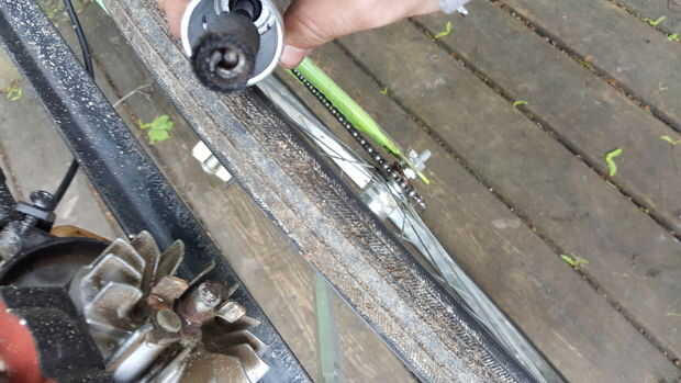 esta es mi moto con Weed Eater. Es impulsión de la fricción, como se puede ver y está montado con acero. Nosotros estábamos pensando en aluminio, pero podría ser a la luz y no bastante fuerte. el eje es uno de los tubos de bicicleta de acrobacias. La