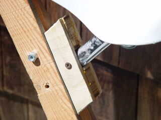construí una bici de madera independiente rack para bicicleta solo basado en mi diseño dual-bike. Tuve algunos 2x4s chatarra. pero necesitaba comprar unos 2x4s nuevo para este estante. El gancho de bicicleta se cuelga en 63,5", que es perfecto para