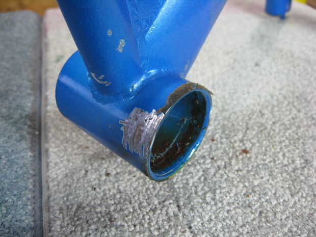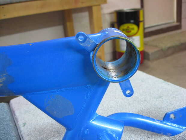 Había unos fichas poco alrededor en mi marco que estaban allí para colocar el protector de cadena plástico. Estas había cortado con mi dremel y las áreas circundantes abajo liso de tierra.