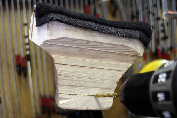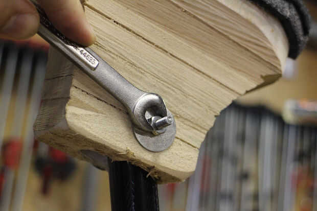 El bloque de asiento fue colocado sobre el poste del asiento, y luego una pequeña abertura fue perforada a través de la base del bloque de asiento totalmente a través de la tija de sillín y por el otro lado. Un largo tornillo roscado a través de la abertura y sujeta con arandelas y tuercas para garantizar mantener el bloque de asiento a la bicicleta.