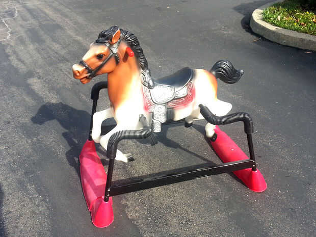 Necesitarás juguete caballo niños, el tipo de plástico hueco que son suspendidos por muelles son una buena opción. Encontré esto usado para la venta en una web listado (Craigslist) y paga $30. Hice algunas búsquedas en línea para una tienda que vende uno similar a la mía, pero no podía encontrar nada. Tal vez es un artículo discontinuado solo disponible segunda mano.