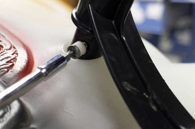 Quitó la cubierta de la manija en el cuello, luego el mango se deslizó hacia fuera.
