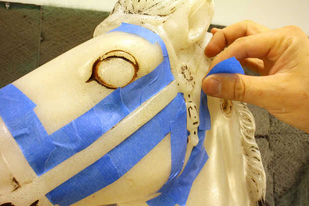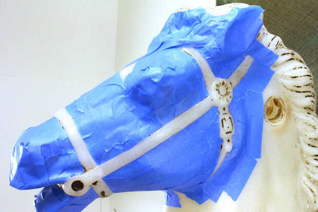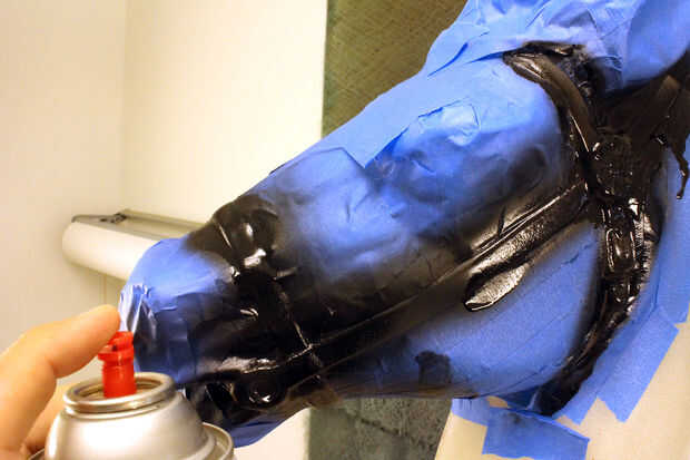 A continuación, cuidadosamente enmascarado de las zonas que no quería pintar. Desde pintura a este tipo de plástico puede ser complicada aplica capas finas de pintura para construir una base sólida. Solicité unas 4 capas de pintura negra para la brida.