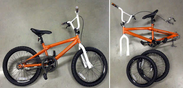 Porque estoy usando a un niños caballo necesita un marco adecuado para acomodar. Elegí un grande 20" rueda diámetro bici del cabrito BMX estilo. Esta moto es una opción perfecta ya que tiene un diseño simple, puede ser modificada fácilmente y tiene un freno de práctico de Costa (pedal hacia atrás para parar). Estas bicis son baratos y disponibles en todas partes, en la tienda y de segunda mano.
