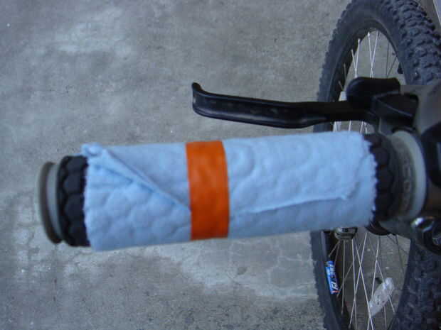 Solución: Añadir algo menos pegajosa goma como papel al manillar. Ver fotos...