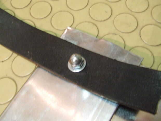 Corte dos piezas incluso de la correa. 10 pulgadas cada uno debe hacer. Taladro 2 agujeros a través de los planos de aluminio, uno hacia delante y uno hacia atrás. Uso los pernos con las tuercas para fijar las correas de fijación. Colgar los planos sobre su travesaño como alforjas.