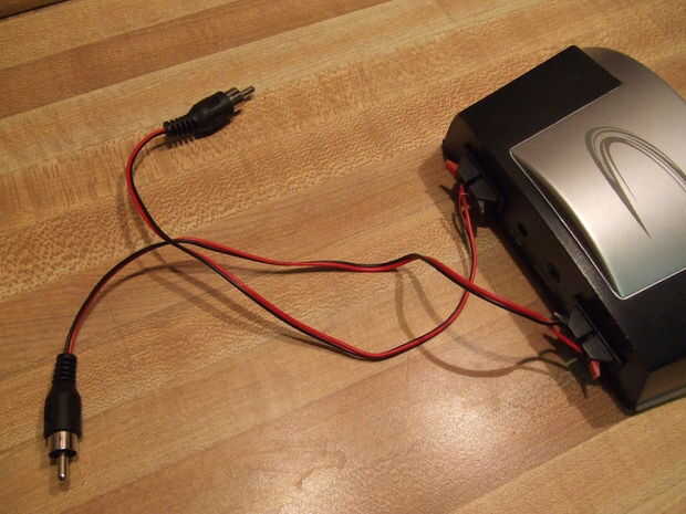 T-amp mi Sonic vino con cables de altavoz de largo machos RCA. Trimed a sobre 6 pulgadas para no quedar atrapados en la rueda delantera.