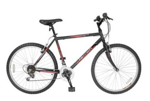 Se encuentra una bici de donantes. Compramos uno nuevo para £80, pero hará cualquier bicicleta de montaña.
