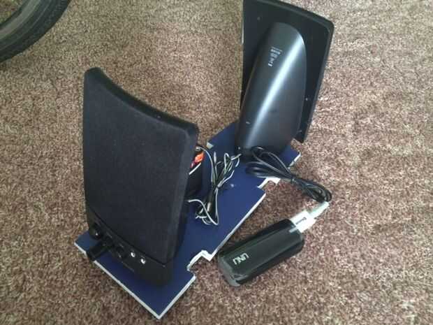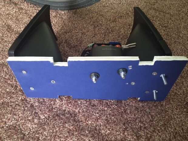 Decidí probar y Monte las bocinas a un tablero de la espuma que había dejado de otro proyecto. Corté una pieza para encajar dentro de la zona que rodea la parte superior de la rejilla. Entonces tuve que muesca hacia fuera para los clips de bolso de silla de montar que se sentía un poco débil con una capa así que cortar otro pedazo y pegado junto con algunos clavos líquidos que tenía en mano. Que parecía realmente lo endurece para arriba. Los altavoces tienen un fondo plástico así que intenté utilizando algunos tornillos tipo a través del fondo de Junta de espuma en los altavoces. Una cosa buena acerca de estos altavoces es que las rejillas saldrá junto con la cubierta inferior por lo que pude ver donde van a estar los extremos de los tornillos. Tuve que tener cuidado con el altavoz que tiene el cable ya que tiene una placa de circuito cerca del fondo. La otra ponente acaba de un alambre en la parte posterior. I taladrar agujeros piloto de 3 tornillos y atornillados a ellos hasta que fueron al ras con el tablero de la espuma. El estante de la bici tenía 2 agujeros de 1 pulgada desde el borde frontal que usé para ayudar a mantener en posición con 2 tornillos a través del tablero de la espuma. A continuación tuve que montar la batería en alguna parte. Tenía una botella de shampoo que estaba simplemente vacía así que había lavado hacia fuera y corte la parte inferior y mucho para mi sorpresa era casi un ajuste perfecto. Taladré 2 agujeros así que para evitar la batería remaches del metal entren en contacto con ellos en caso de que podría provocar un corto circuito algunos donde. Usé 2 tornillos con tuercas de seguridad de nylon para mantener en su lugar.